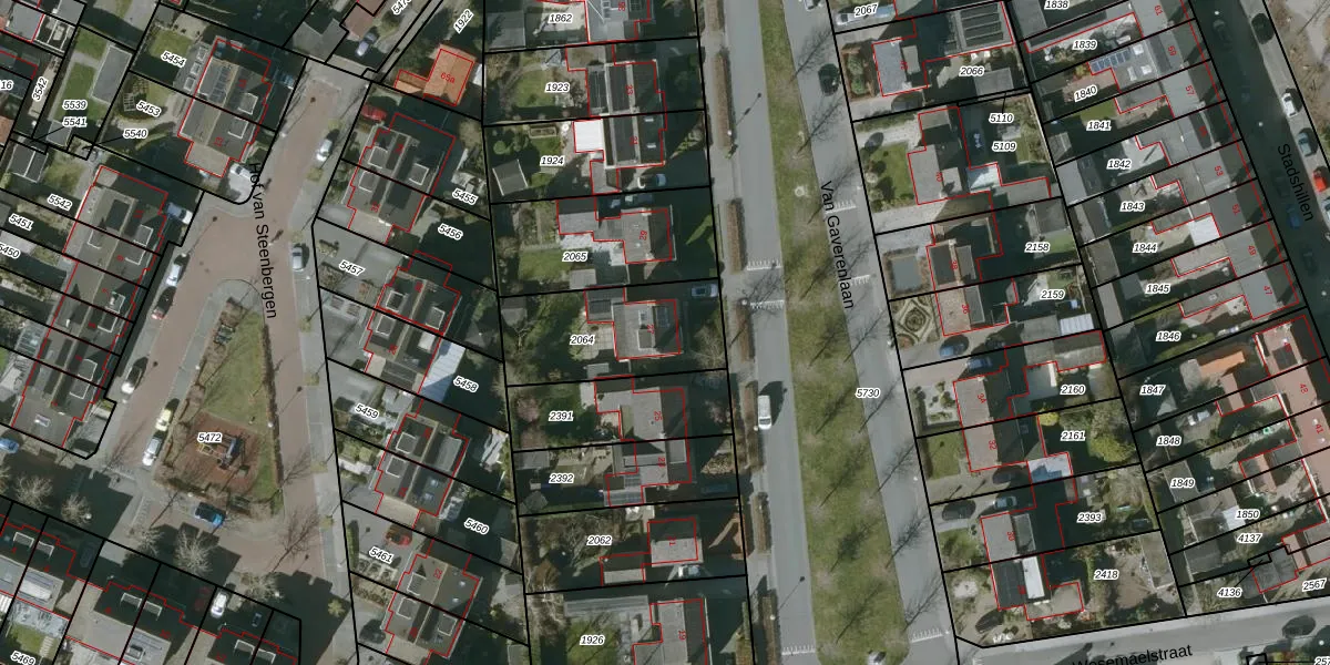 Gebruik de zoekbalk of klik op een perceel voor informatie over de adressen binnen dit perceel.