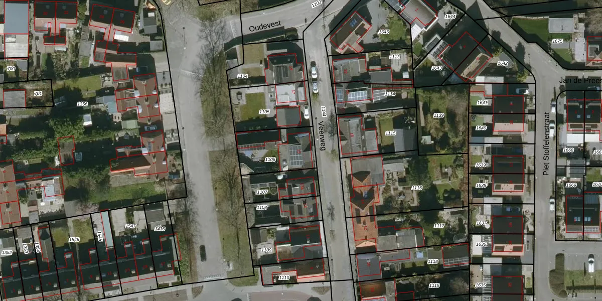 Gebruik de zoekbalk of klik op een perceel voor informatie over de adressen binnen dit perceel.