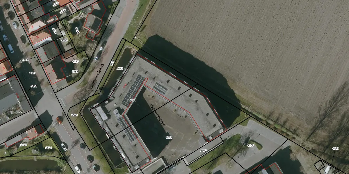 Het perceel waarop Wapenplaats 56 staat heeft een oppervlakte van 1340 m². Dit is een zeer groot perceel. De perceeloppervlakte wordt geregistreerd door het Kadaster. Gedetailleerde informatie over de maten van dit perceel kunt u vinden in het rapport Kadastrale kaart met maatvoering van Wapenplaats 56.