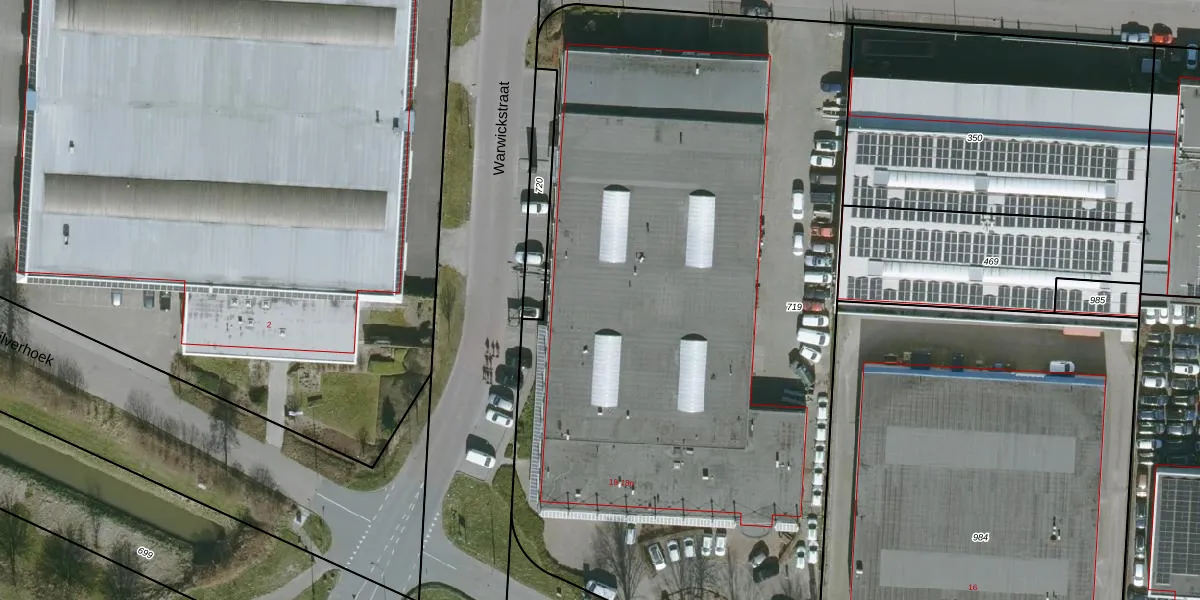 Het perceel waarop Warwickstraat 2-k staat heeft een oppervlakte van 5240 m². Dit is een zeer groot perceel. De perceeloppervlakte wordt geregistreerd door het Kadaster. Gedetailleerde informatie over de maten van dit perceel kunt u vinden in het rapport Kadastrale kaart met maatvoering van Warwickstraat 2-k.