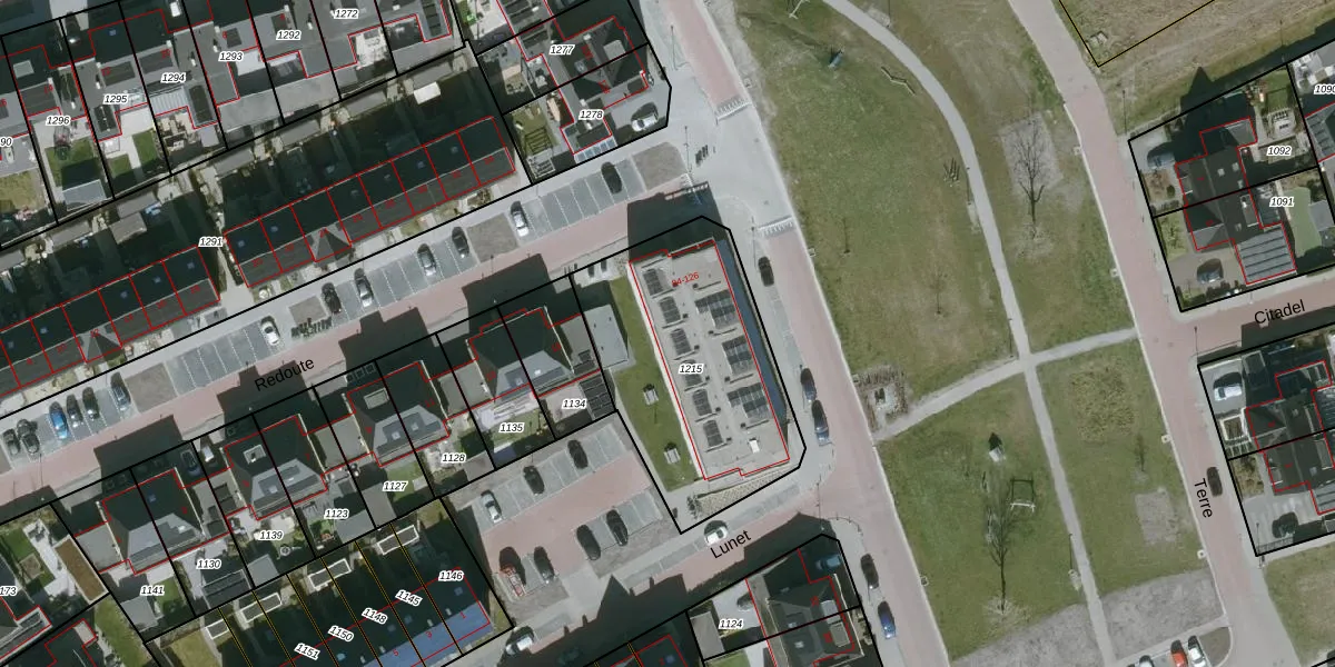 Waterlinie 100 is gelegen op kadastraal perceel SBG02E1215. Deze kadastrale aanduiding is uniek en wordt gebruikt door het Kadaster om eigendomsrechten en andere zakelijke rechten vast te leggen. Het perceel maakt onderdeel uit van de kadastrale gemeente Steenbergen.