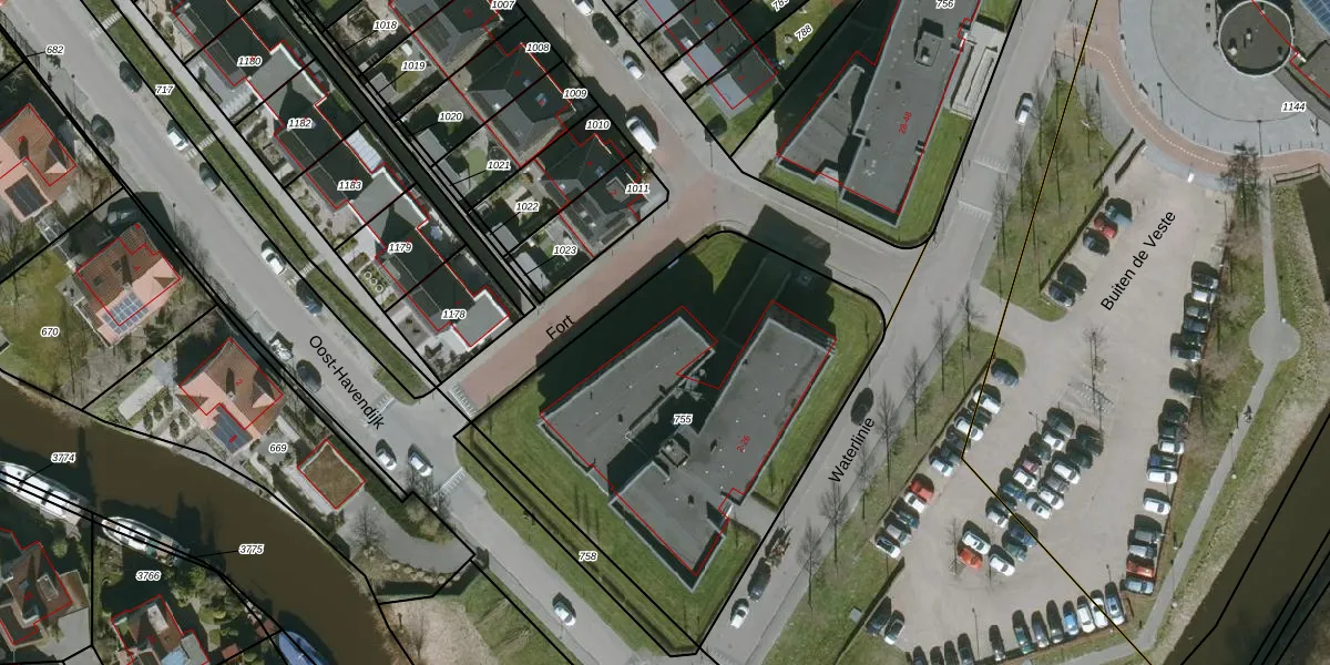 Het perceel waarop Waterlinie 6 staat heeft een oppervlakte van 2015 m². Dit is een zeer groot perceel. De perceeloppervlakte wordt geregistreerd door het Kadaster. Gedetailleerde informatie over de maten van dit perceel kunt u vinden in het rapport Kadastrale kaart met maatvoering van Waterlinie 6.
