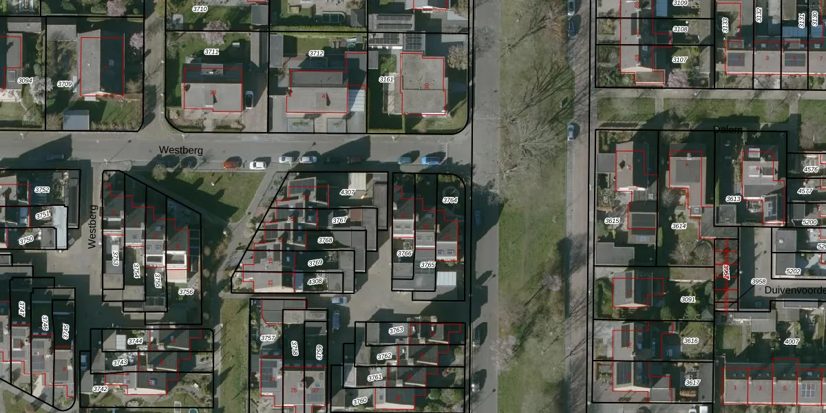 Gebruik de zoekbalk of klik op een perceel voor informatie over de adressen binnen dit perceel.