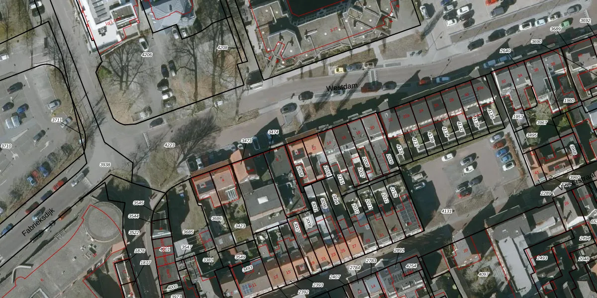 Het perceel waarop Westdam 10 staat heeft een oppervlakte van 94 m². Dit is een klein perceel. De perceeloppervlakte wordt geregistreerd door het Kadaster. Gedetailleerde informatie over de maten van dit perceel kunt u vinden in het rapport Kadastrale kaart met maatvoering van Westdam 10.