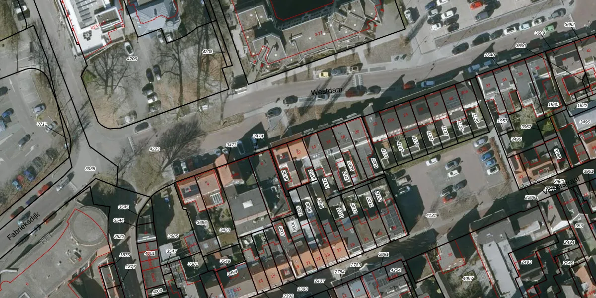 Het perceel waarop Westdam 12 staat heeft een oppervlakte van 85 m². Dit is een klein perceel. De perceeloppervlakte wordt geregistreerd door het Kadaster. Gedetailleerde informatie over de maten van dit perceel kunt u vinden in het rapport Kadastrale kaart met maatvoering van Westdam 12.