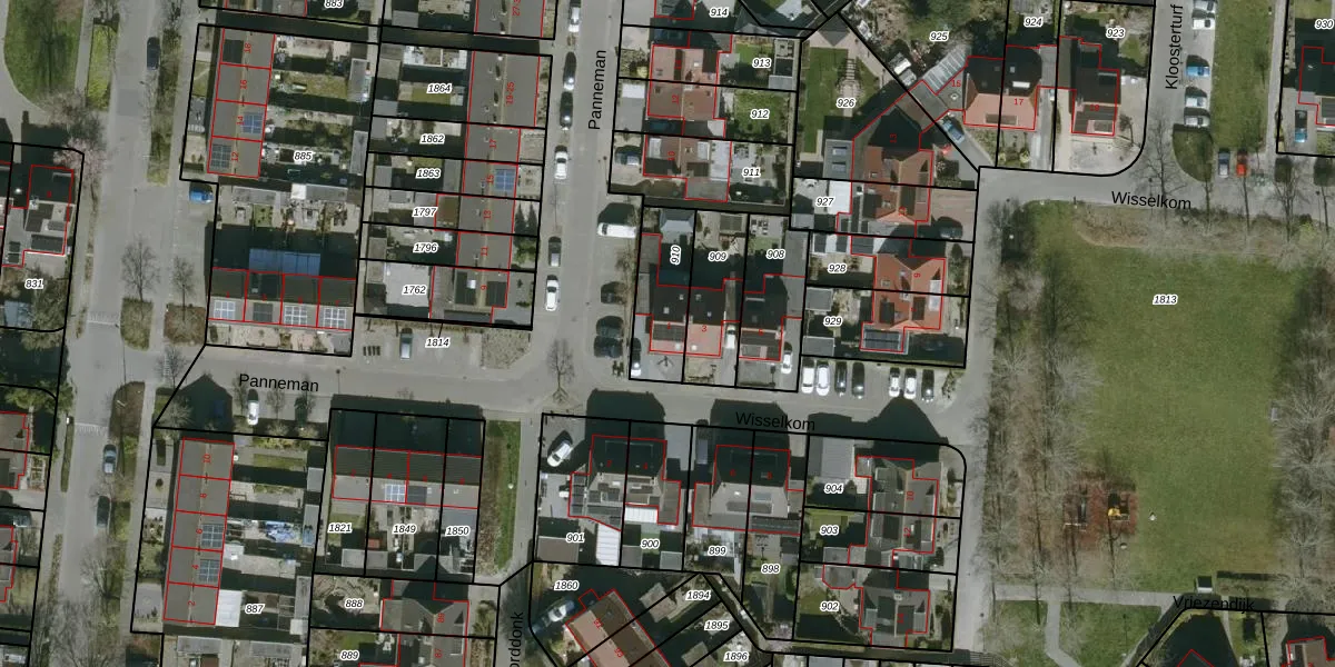 Gebruik de zoekbalk of klik op een perceel voor informatie over de adressen binnen dit perceel.