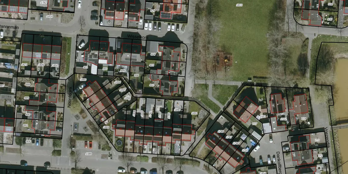 Gebruik de zoekbalk of klik op een perceel voor informatie over de adressen binnen dit perceel.