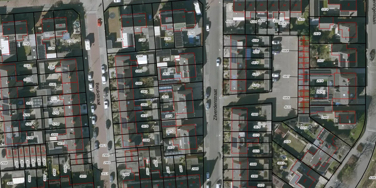 Gebruik de zoekbalk of klik op een perceel voor informatie over de adressen binnen dit perceel.