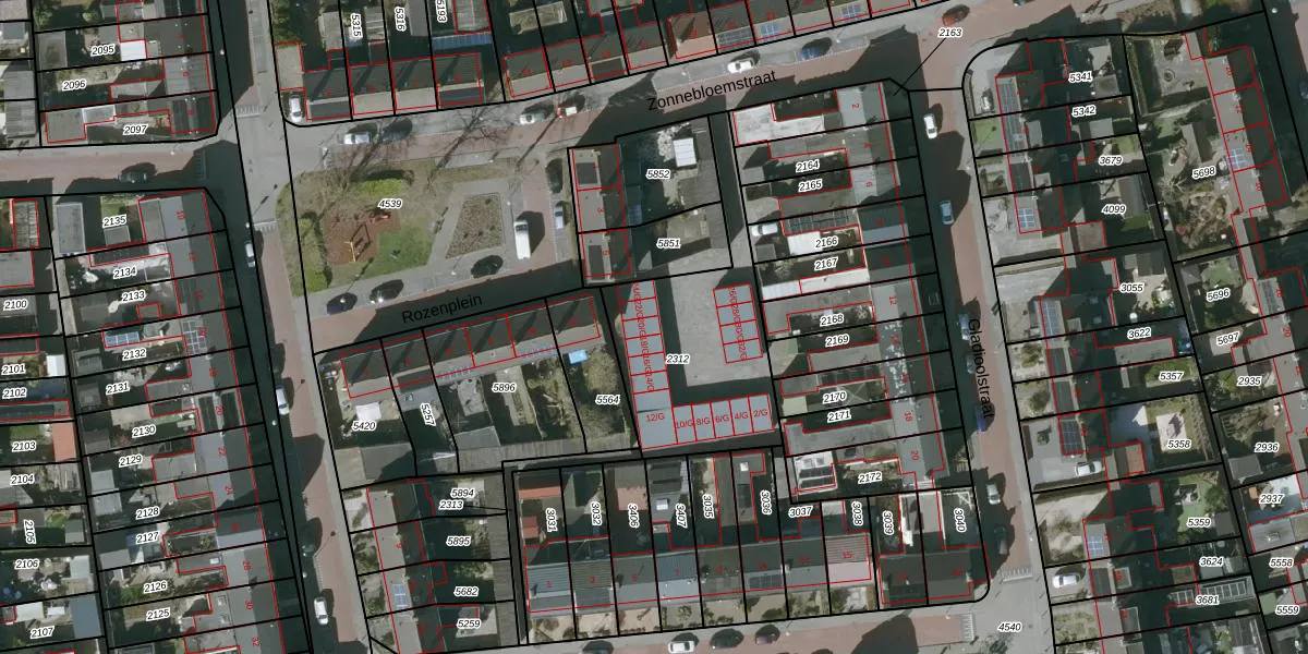Het perceel waarop Zonnebloemstraat 20-G staat heeft een oppervlakte van 695 m². Dit is een groot perceel. De perceeloppervlakte wordt geregistreerd door het Kadaster. Gedetailleerde informatie over de maten van dit perceel kunt u vinden in het rapport Kadastrale kaart met maatvoering van Zonnebloemstraat 20-G.