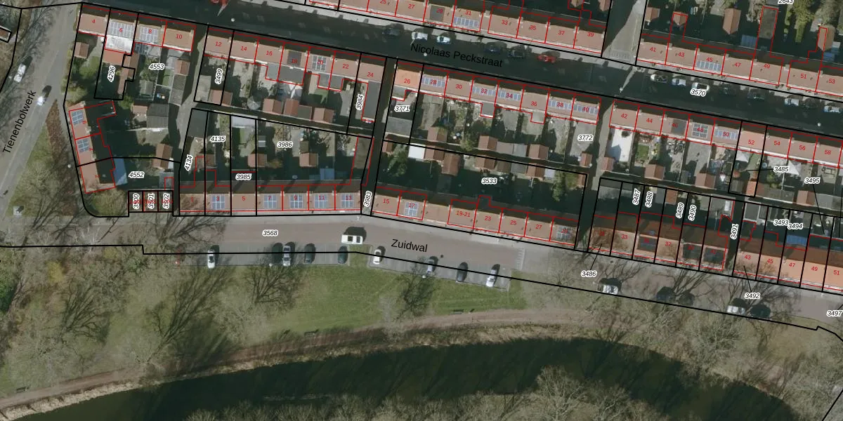 Het perceel waarop Zuidwal 17 staat heeft een oppervlakte van 890 m². Dit is een groot perceel. De perceeloppervlakte wordt geregistreerd door het Kadaster. Gedetailleerde informatie over de maten van dit perceel kunt u vinden in het rapport Kadastrale kaart met maatvoering van Zuidwal 17.