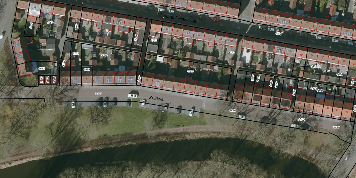 Het perceel waarop Zuidwal 21 staat heeft een oppervlakte van 890 m². Dit is een groot perceel. De perceeloppervlakte wordt geregistreerd door het Kadaster. Gedetailleerde informatie over de maten van dit perceel kunt u vinden in het rapport Kadastrale kaart met maatvoering van Zuidwal 21.