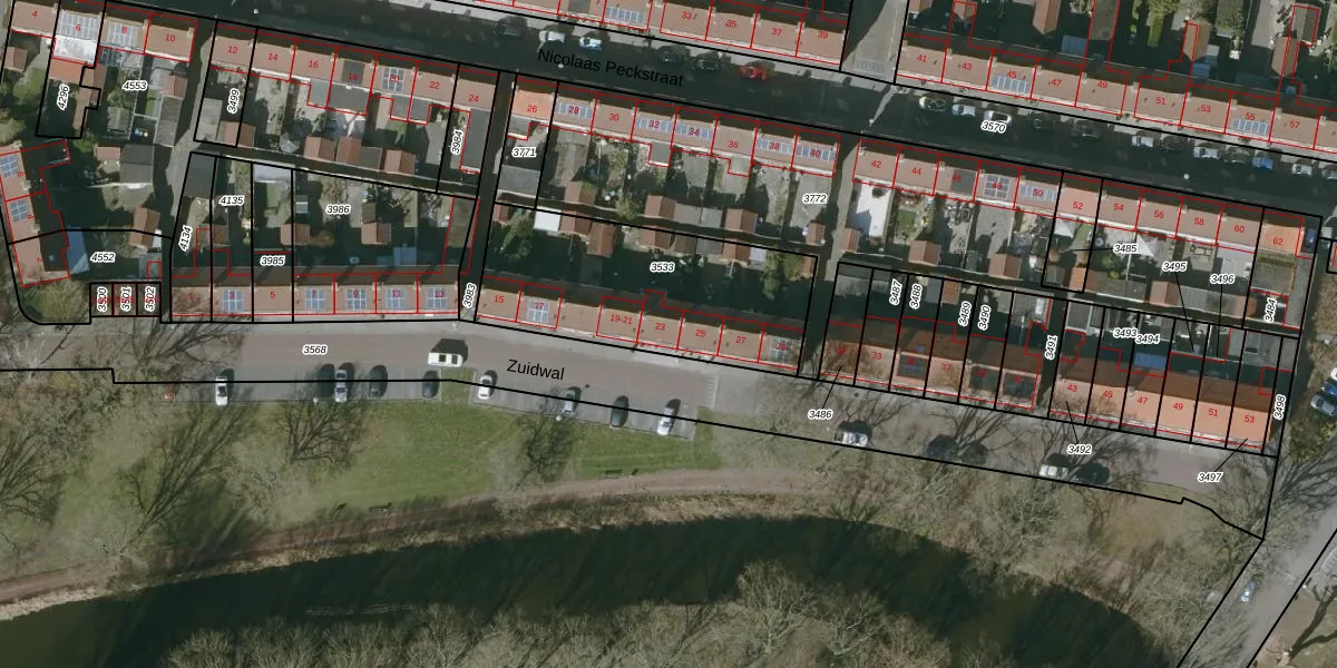 Het perceel waarop Zuidwal 23 staat heeft een oppervlakte van 890 m². Dit is een groot perceel. De perceeloppervlakte wordt geregistreerd door het Kadaster. Gedetailleerde informatie over de maten van dit perceel kunt u vinden in het rapport Kadastrale kaart met maatvoering van Zuidwal 23.