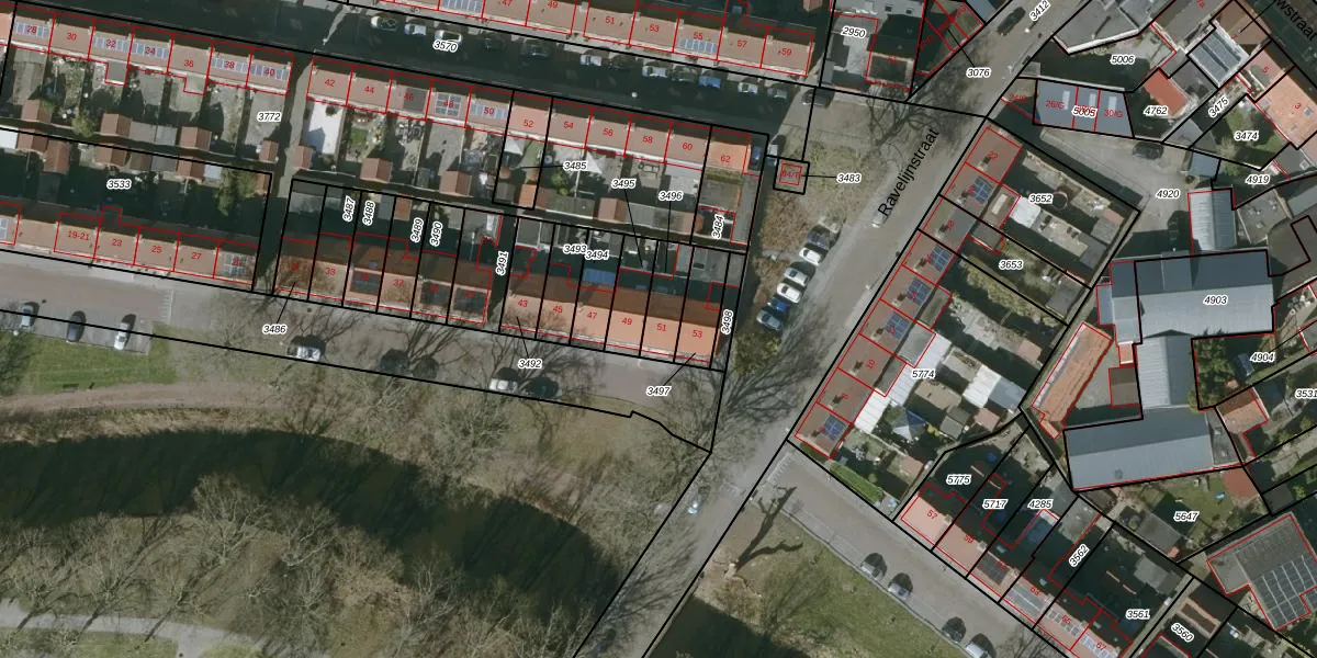 Gebruik de zoekbalk of klik op een perceel voor informatie over de adressen binnen dit perceel.