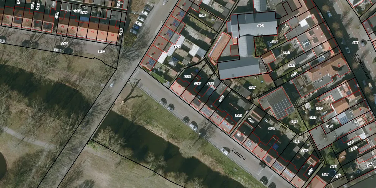 Het perceel waarop Zuidwal 59 staat heeft een oppervlakte van 152 m². Dit is een middelgroot perceel. De perceeloppervlakte wordt geregistreerd door het Kadaster. Gedetailleerde informatie over de maten van dit perceel kunt u vinden in het rapport Kadastrale kaart met maatvoering van Zuidwal 59.