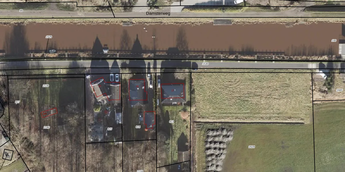 Het perceel waarop Damsterweg 27 staat heeft een oppervlakte van 1075 m². Dit is een zeer groot perceel. De perceeloppervlakte wordt geregistreerd door het Kadaster. Gedetailleerde informatie over de maten van dit perceel kunt u vinden in het rapport Kadastrale kaart met maatvoering van Damsterweg 27.