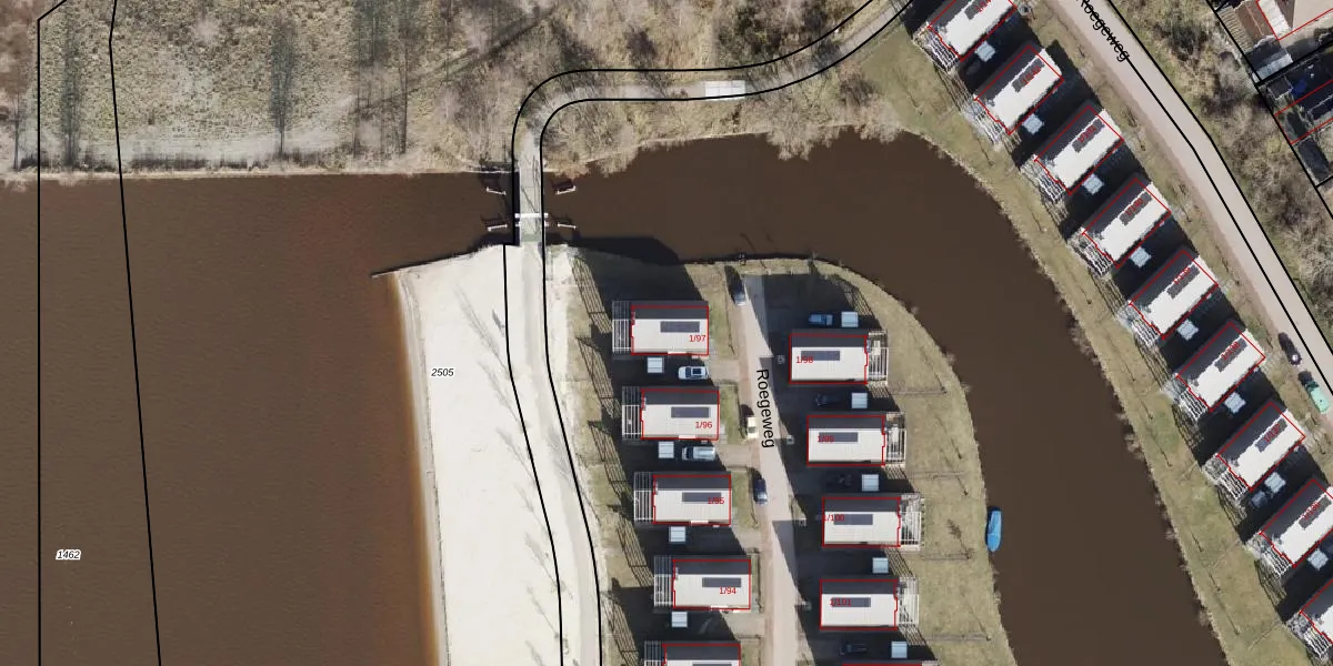 Roegeweg 1-97 is gelegen op kadastraal perceel STR02S1791. Deze kadastrale aanduiding is uniek en wordt gebruikt door het Kadaster om eigendomsrechten en andere zakelijke rechten vast te leggen. Het perceel maakt onderdeel uit van de kadastrale gemeente Slochteren.