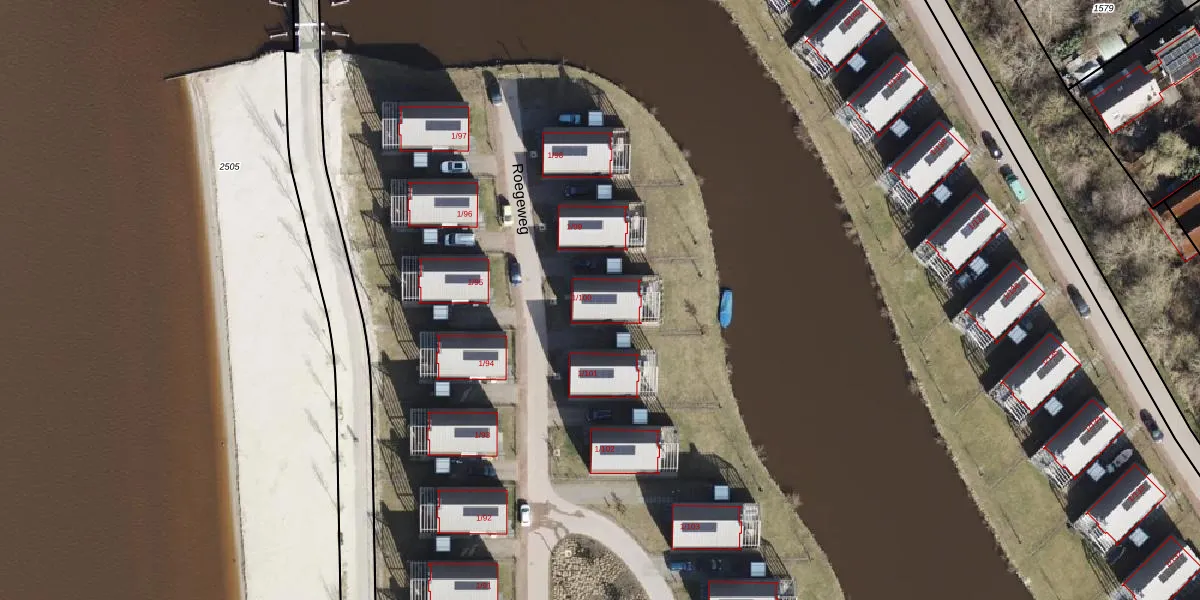 Roegeweg 1-100 is gelegen op kadastraal perceel STR02S1791. Deze kadastrale aanduiding is uniek en wordt gebruikt door het Kadaster om eigendomsrechten en andere zakelijke rechten vast te leggen. Het perceel maakt onderdeel uit van de kadastrale gemeente Slochteren.