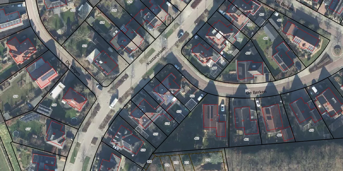 Het perceel waarop De Berken 23 staat heeft een oppervlakte van 362 m². Dit is een groot perceel. De perceeloppervlakte wordt geregistreerd door het Kadaster. Gedetailleerde informatie over de maten van dit perceel kunt u vinden in het rapport Kadastrale kaart met maatvoering van De Berken 23.