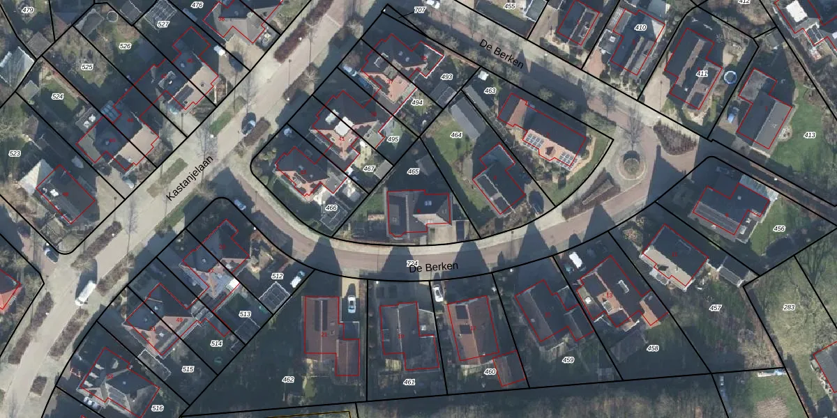 Het perceel waarop De Berken 6 staat heeft een oppervlakte van 481 m². Dit is een groot perceel. De perceeloppervlakte wordt geregistreerd door het Kadaster. Gedetailleerde informatie over de maten van dit perceel kunt u vinden in het rapport Kadastrale kaart met maatvoering van De Berken 6.