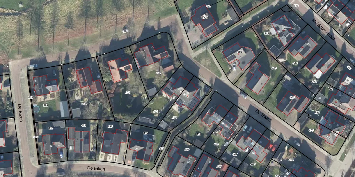 Het perceel waarop De Eiken 11 staat heeft een oppervlakte van 444 m². Dit is een groot perceel. De perceeloppervlakte wordt geregistreerd door het Kadaster. Gedetailleerde informatie over de maten van dit perceel kunt u vinden in het rapport Kadastrale kaart met maatvoering van De Eiken 11.