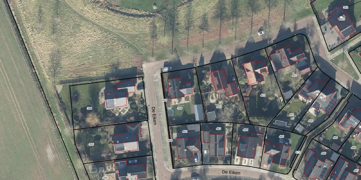 Het perceel waarop De Eiken 19 staat heeft een oppervlakte van 605 m². Dit is een groot perceel. De perceeloppervlakte wordt geregistreerd door het Kadaster. Gedetailleerde informatie over de maten van dit perceel kunt u vinden in het rapport Kadastrale kaart met maatvoering van De Eiken 19.