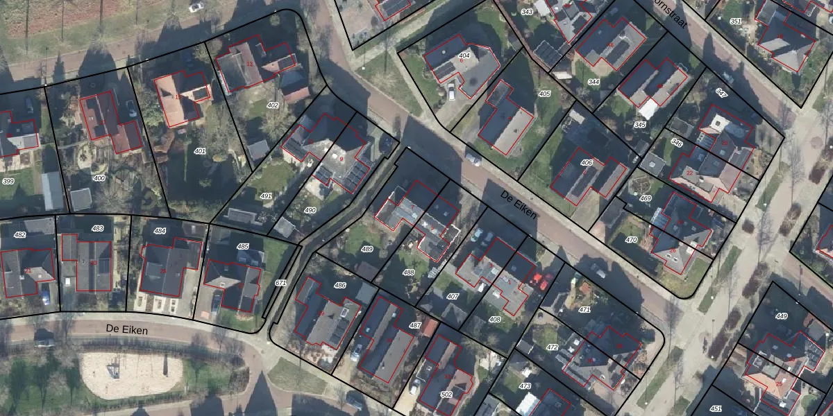 Het perceel waarop De Eiken 7 staat heeft een oppervlakte van 402 m². Dit is een groot perceel. De perceeloppervlakte wordt geregistreerd door het Kadaster. Gedetailleerde informatie over de maten van dit perceel kunt u vinden in het rapport Kadastrale kaart met maatvoering van De Eiken 7.