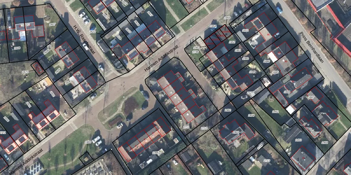 Het perceel waarop Harmen Addinkstraat 14 staat heeft een oppervlakte van 945 m². Dit is een groot perceel. De perceeloppervlakte wordt geregistreerd door het Kadaster. Gedetailleerde informatie over de maten van dit perceel kunt u vinden in het rapport Kadastrale kaart met maatvoering van Harmen Addinkstraat 14.