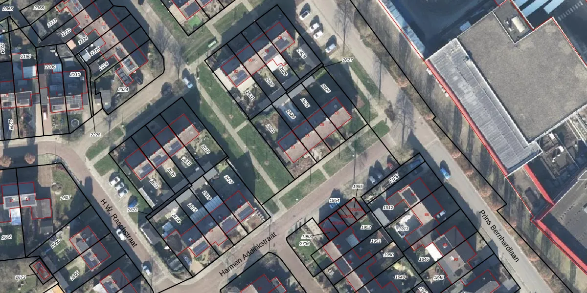 Gebruik de zoekbalk of klik op een perceel voor informatie over de adressen binnen dit perceel.