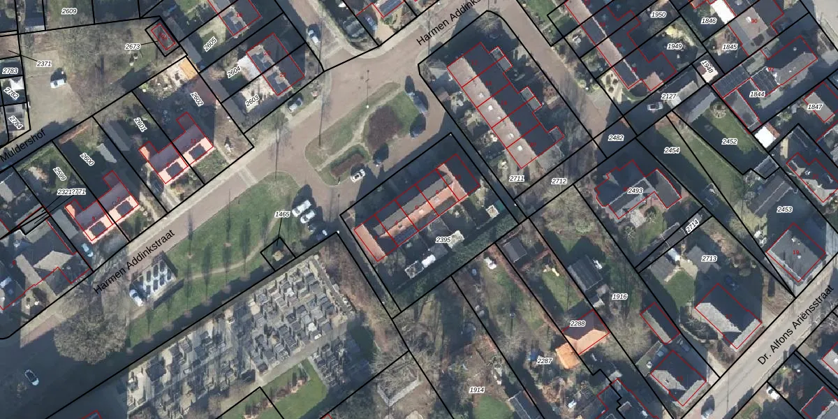 Het perceel waarop Harmen Addinkstraat 6 staat heeft een oppervlakte van 920 m². Dit is een groot perceel. De perceeloppervlakte wordt geregistreerd door het Kadaster. Gedetailleerde informatie over de maten van dit perceel kunt u vinden in het rapport Kadastrale kaart met maatvoering van Harmen Addinkstraat 6.