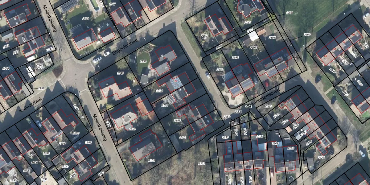 Gebruik de zoekbalk of klik op een perceel voor informatie over de adressen binnen dit perceel.