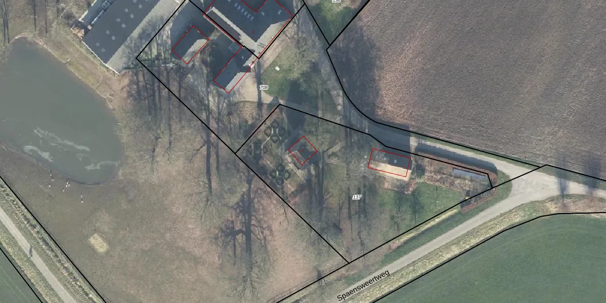 Het perceel waarop Spaensweertweg 2 staat heeft een oppervlakte van 2190 m². Dit is een zeer groot perceel. De perceeloppervlakte wordt geregistreerd door het Kadaster. Gedetailleerde informatie over de maten van dit perceel kunt u vinden in het rapport Kadastrale kaart met maatvoering van Spaensweertweg 2.
