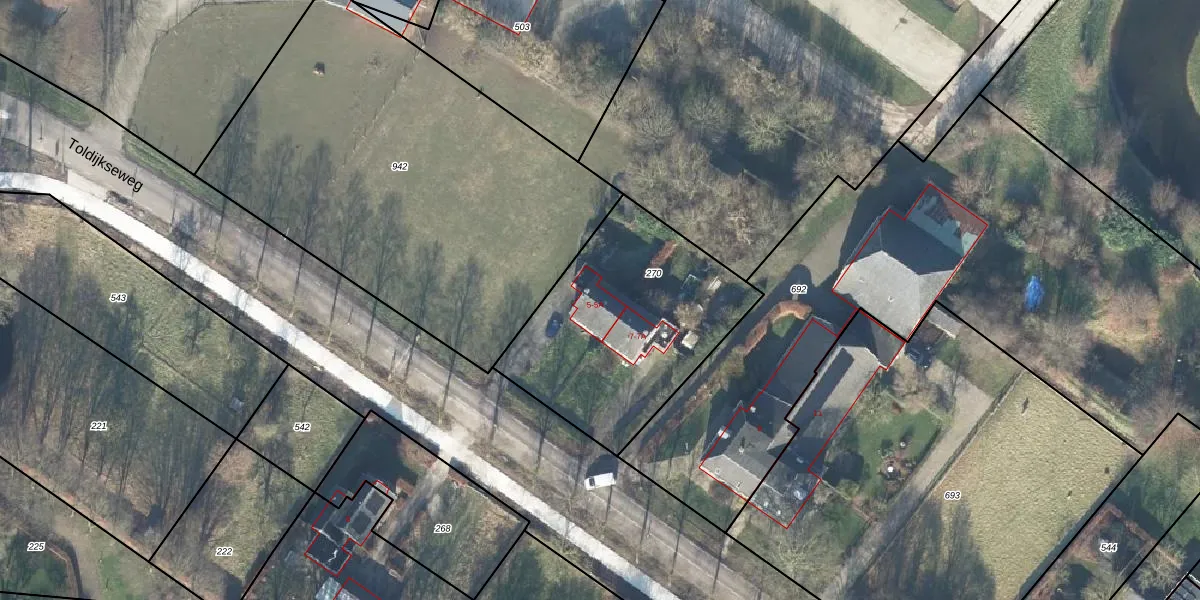 Toldijkseweg 5 is gelegen op kadastraal perceel SDR00V270. Deze kadastrale aanduiding is uniek en wordt gebruikt door het Kadaster om eigendomsrechten en andere zakelijke rechten vast te leggen. Het perceel maakt onderdeel uit van de kadastrale gemeente Steenderen.