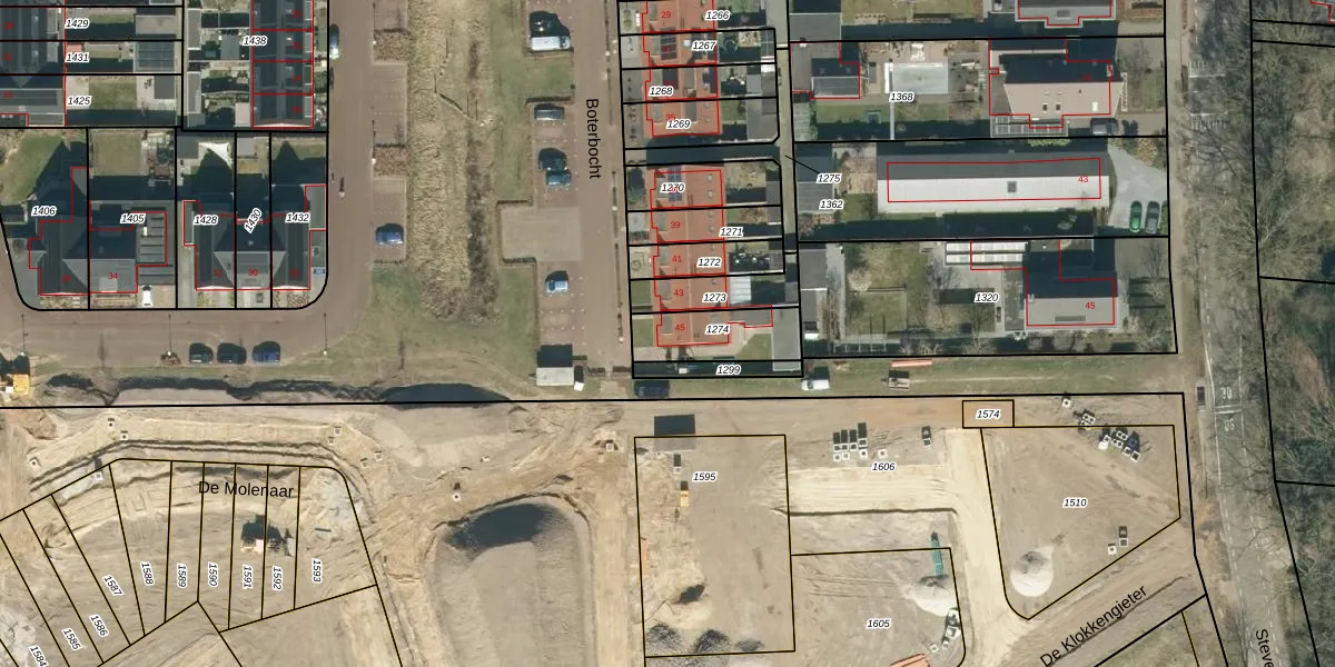Het perceel waarop Boterbocht 45 staat heeft een oppervlakte van 194 m². Dit is een middelgroot perceel. De perceeloppervlakte wordt geregistreerd door het Kadaster. Gedetailleerde informatie over de maten van dit perceel kunt u vinden in het rapport Kadastrale kaart met maatvoering van Boterbocht 45.