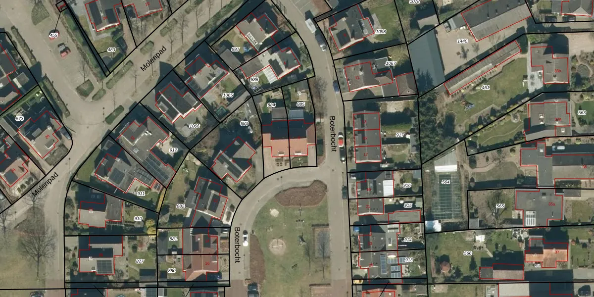 Gebruik de zoekbalk of klik op een perceel voor informatie over de adressen binnen dit perceel.