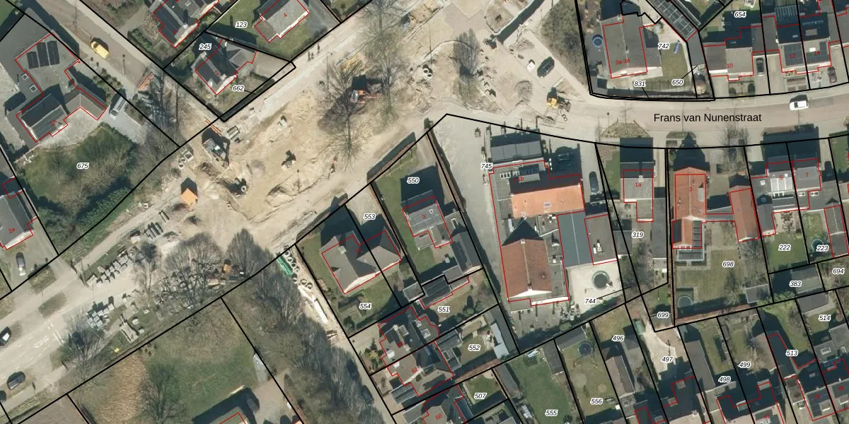 Gebruik de zoekbalk of klik op een perceel voor informatie over de adressen binnen dit perceel.