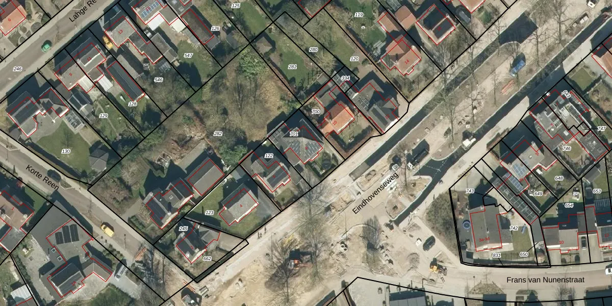 Eindhovenseweg 8 is gelegen op kadastraal perceel ESL00G701. Deze kadastrale aanduiding is uniek en wordt gebruikt door het Kadaster om eigendomsrechten en andere zakelijke rechten vast te leggen. Het perceel maakt onderdeel uit van de kadastrale gemeente Eersel.