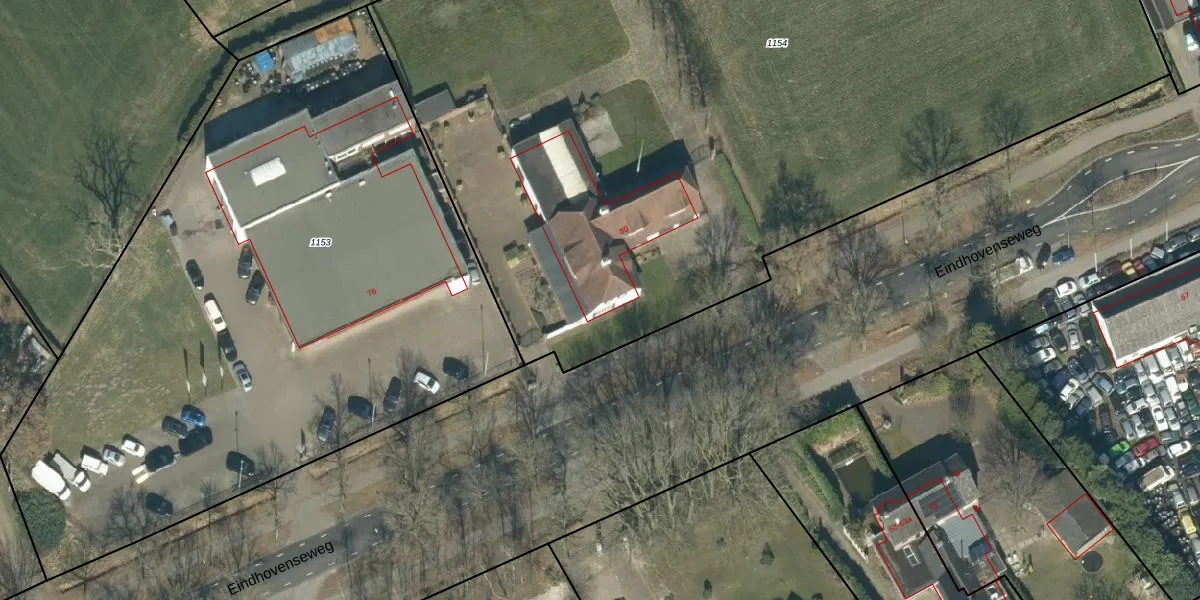 Eindhovenseweg 80 is gelegen op kadastraal perceel ESL00K1154. Deze kadastrale aanduiding is uniek en wordt gebruikt door het Kadaster om eigendomsrechten en andere zakelijke rechten vast te leggen. Het perceel maakt onderdeel uit van de kadastrale gemeente Eersel.
