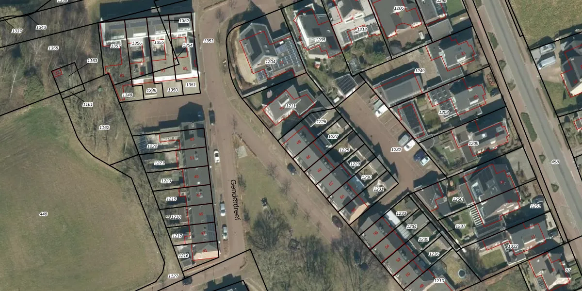 Het perceel waarop Genderdreef 68 staat heeft een oppervlakte van 162 m². Dit is een middelgroot perceel. De perceeloppervlakte wordt geregistreerd door het Kadaster. Gedetailleerde informatie over de maten van dit perceel kunt u vinden in het rapport Kadastrale kaart met maatvoering van Genderdreef 68.