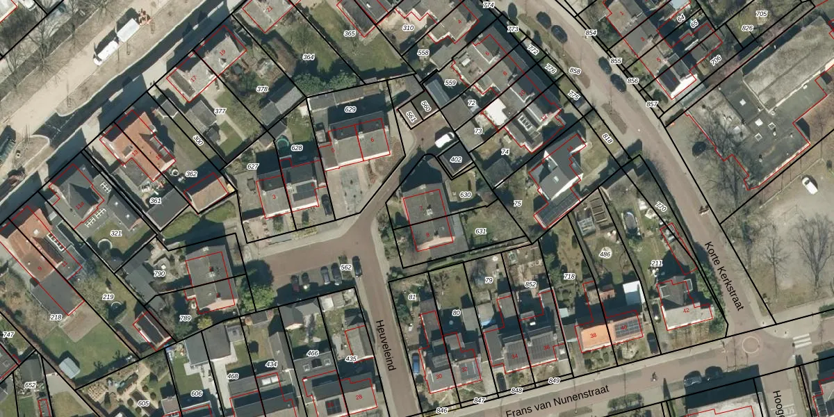 Gebruik de zoekbalk of klik op een perceel voor informatie over de adressen binnen dit perceel.