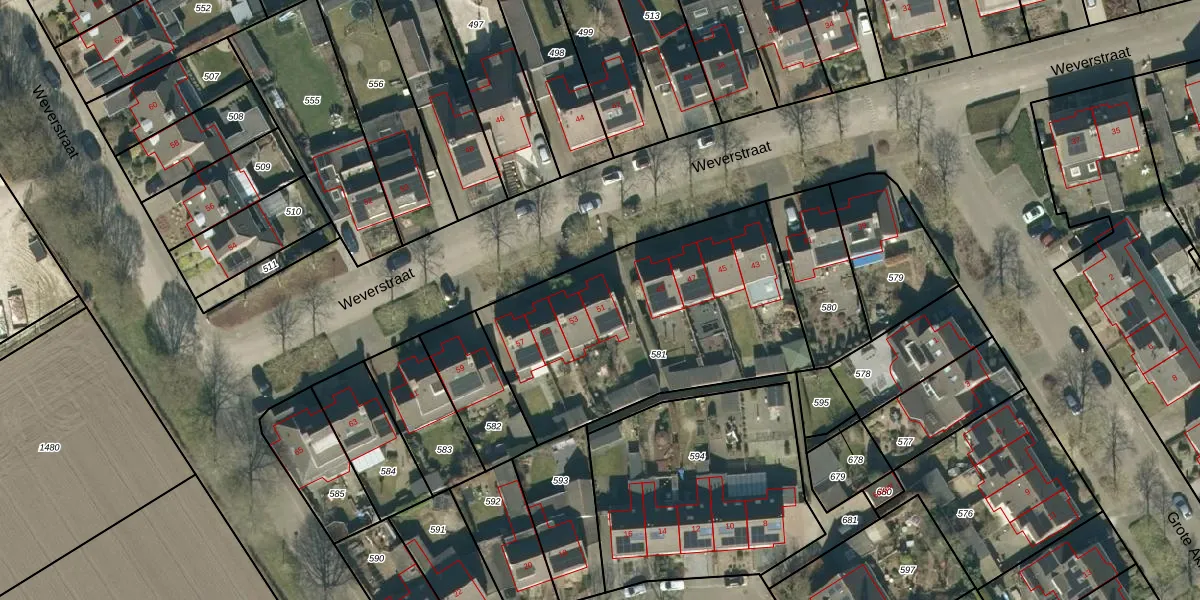 Het perceel waarop Weverstraat 51 staat heeft een oppervlakte van 1306 m². Dit is een zeer groot perceel. De perceeloppervlakte wordt geregistreerd door het Kadaster. Gedetailleerde informatie over de maten van dit perceel kunt u vinden in het rapport Kadastrale kaart met maatvoering van Weverstraat 51.