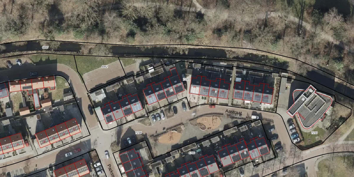 Het perceel waarop Aastraat 26 staat heeft een oppervlakte van 2435 m². Dit is een zeer groot perceel. De perceeloppervlakte wordt geregistreerd door het Kadaster. Gedetailleerde informatie over de maten van dit perceel kunt u vinden in het rapport Kadastrale kaart met maatvoering van Aastraat 26.