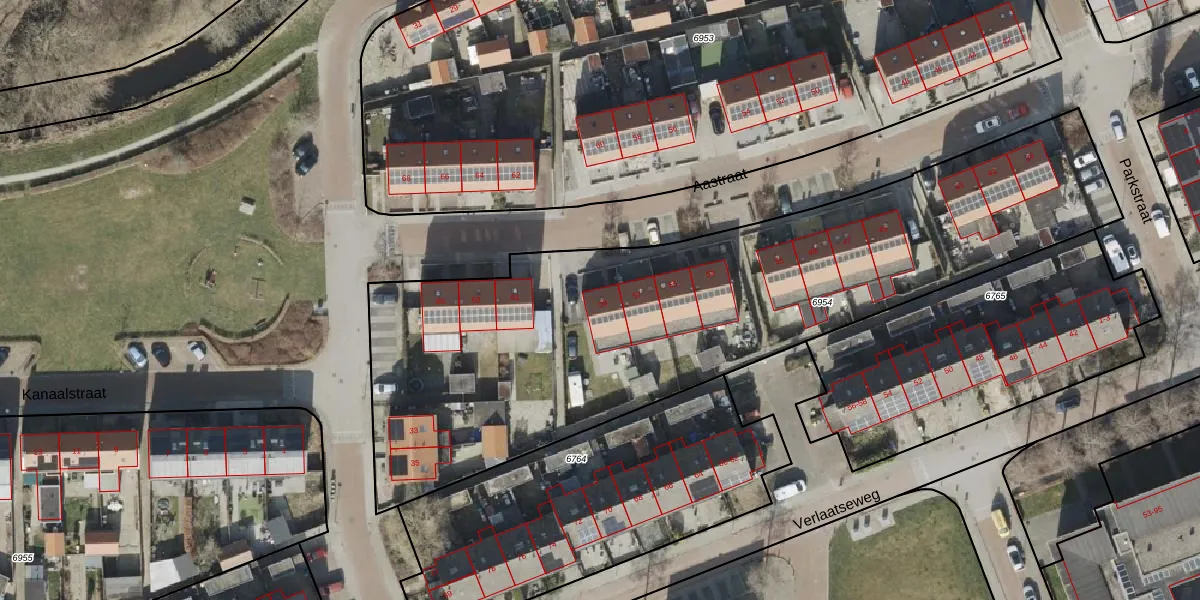 Het perceel waarop Aastraat 59 staat heeft een oppervlakte van 3093 m². Dit is een zeer groot perceel. De perceeloppervlakte wordt geregistreerd door het Kadaster. Gedetailleerde informatie over de maten van dit perceel kunt u vinden in het rapport Kadastrale kaart met maatvoering van Aastraat 59.