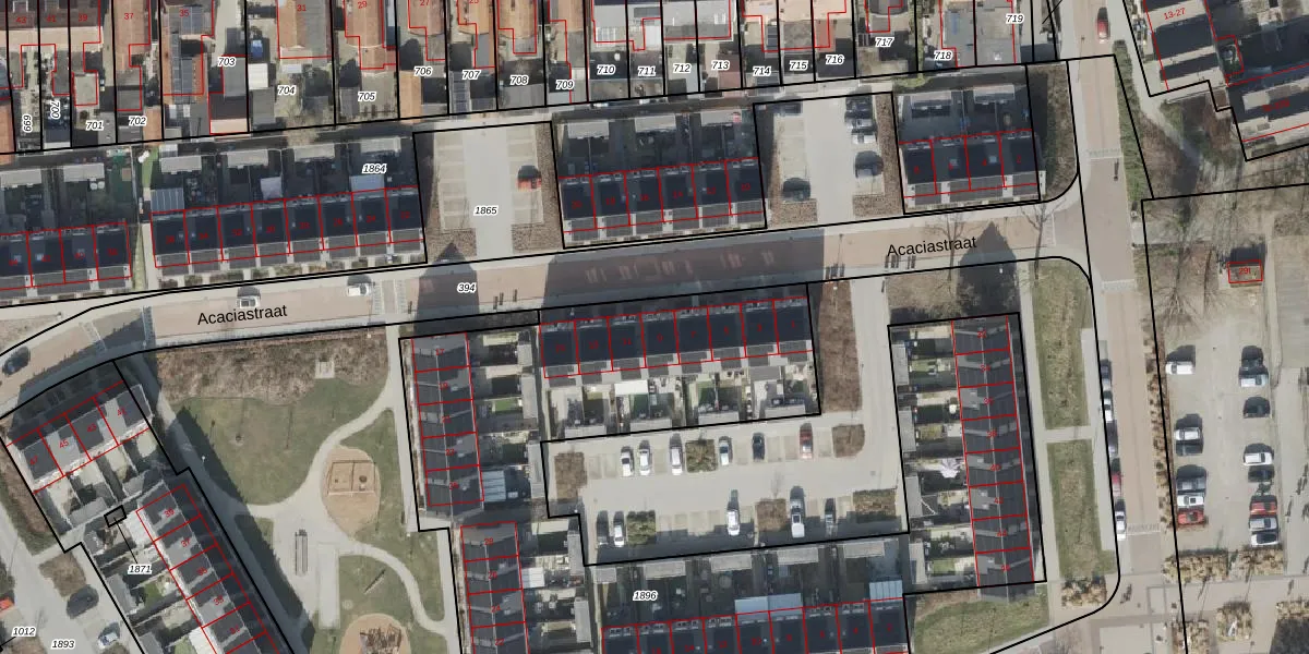 Het perceel waarop Acaciastraat 9 staat heeft een oppervlakte van 3765 m². Dit is een zeer groot perceel. De perceeloppervlakte wordt geregistreerd door het Kadaster. Gedetailleerde informatie over de maten van dit perceel kunt u vinden in het rapport Kadastrale kaart met maatvoering van Acaciastraat 9.