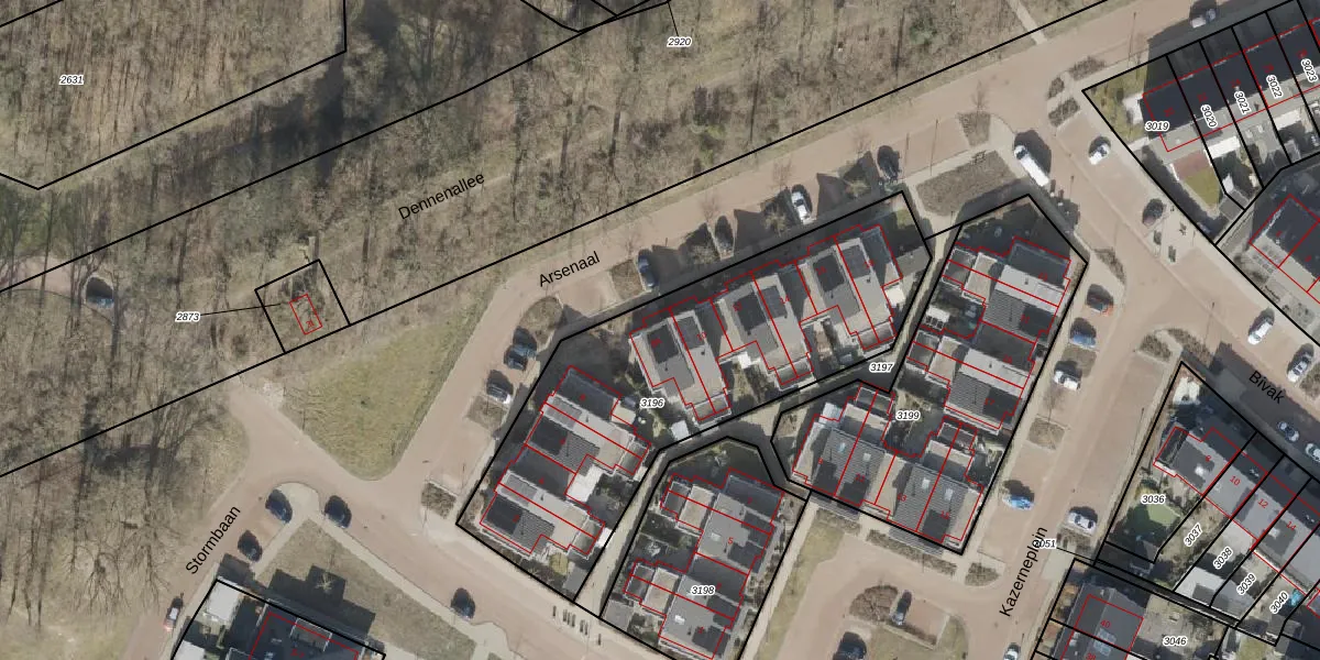 Het perceel waarop Arsenaal 8-A staat heeft een oppervlakte van 1690 m². Dit is een zeer groot perceel. De perceeloppervlakte wordt geregistreerd door het Kadaster. Gedetailleerde informatie over de maten van dit perceel kunt u vinden in het rapport Kadastrale kaart met maatvoering van Arsenaal 8-A.