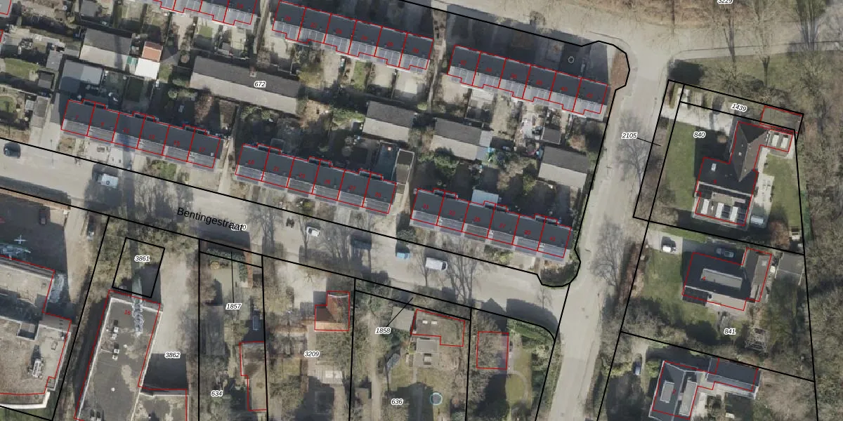 Het perceel waarop Bentingestraat 31 staat heeft een oppervlakte van 8930 m². Dit is een zeer groot perceel. De perceeloppervlakte wordt geregistreerd door het Kadaster. Gedetailleerde informatie over de maten van dit perceel kunt u vinden in het rapport Kadastrale kaart met maatvoering van Bentingestraat 31.