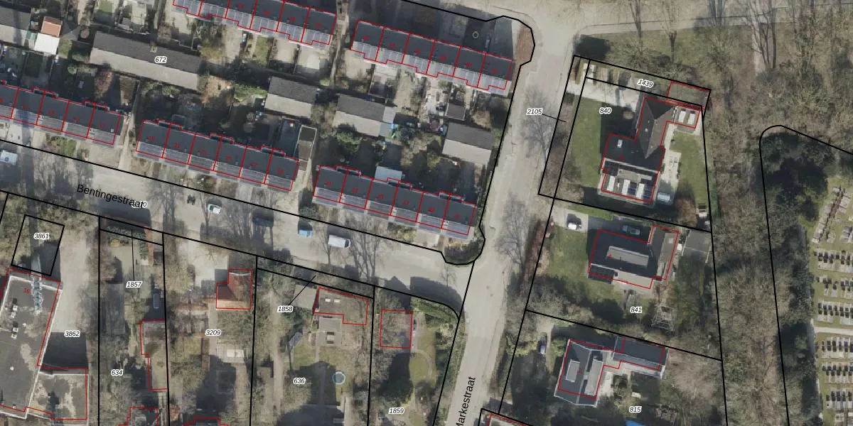 Het perceel waarop Bentingestraat 39 staat heeft een oppervlakte van 8930 m². Dit is een zeer groot perceel. De perceeloppervlakte wordt geregistreerd door het Kadaster. Gedetailleerde informatie over de maten van dit perceel kunt u vinden in het rapport Kadastrale kaart met maatvoering van Bentingestraat 39.