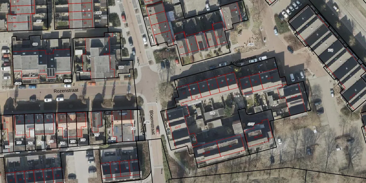 Het perceel waarop Bloemstraat 17 staat heeft een oppervlakte van 2755 m². Dit is een zeer groot perceel. De perceeloppervlakte wordt geregistreerd door het Kadaster. Gedetailleerde informatie over de maten van dit perceel kunt u vinden in het rapport Kadastrale kaart met maatvoering van Bloemstraat 17.