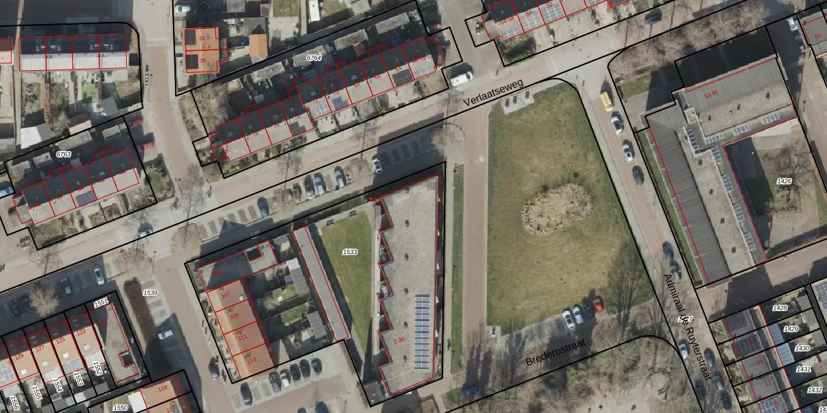 Het perceel waarop Brederostraat 14 staat heeft een oppervlakte van 2299 m². Dit is een zeer groot perceel. De perceeloppervlakte wordt geregistreerd door het Kadaster. Gedetailleerde informatie over de maten van dit perceel kunt u vinden in het rapport Kadastrale kaart met maatvoering van Brederostraat 14.