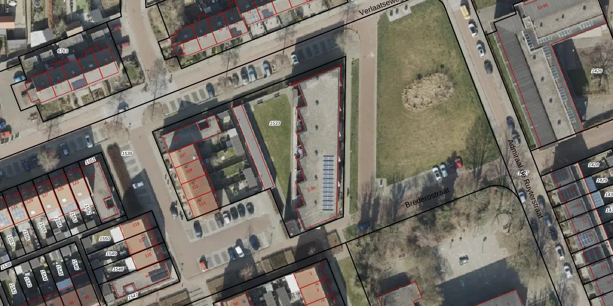 Het perceel waarop Brederostraat 8 staat heeft een oppervlakte van 2299 m². Dit is een zeer groot perceel. De perceeloppervlakte wordt geregistreerd door het Kadaster. Gedetailleerde informatie over de maten van dit perceel kunt u vinden in het rapport Kadastrale kaart met maatvoering van Brederostraat 8.
