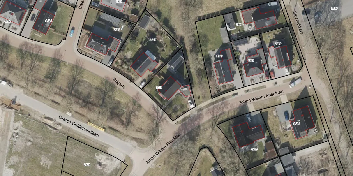 Het perceel waarop Brigade 2 staat heeft een oppervlakte van 655 m². Dit is een groot perceel. De perceeloppervlakte wordt geregistreerd door het Kadaster. Gedetailleerde informatie over de maten van dit perceel kunt u vinden in het rapport Kadastrale kaart met maatvoering van Brigade 2.